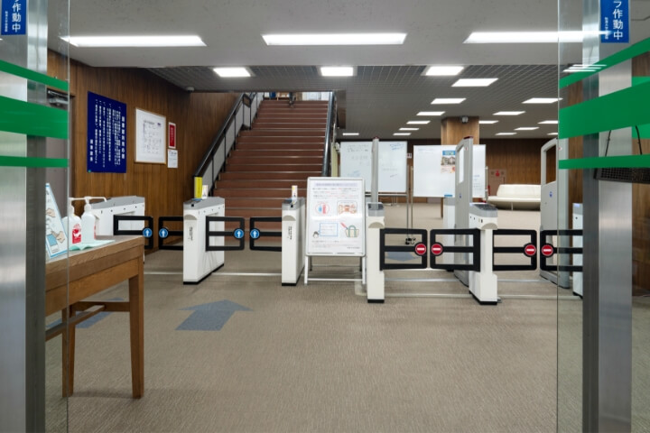 3代目図書館があった場所は、現在駐輪場になっています。駐輪場内の所々に、当時図書館があったことを連想させる「本棚」をモチーフにした装飾が施されています。