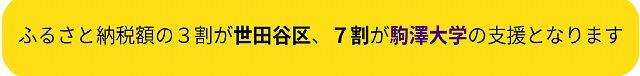東京都世田谷区では、ふるさと納税制度により、主に世田谷区に所在する大学の支援「区内大学応援プロジェクト」を開始し、本制度を通じて、駒澤大学をご支援いただくことが可能になりました。ふるさと納税の3割が世田谷区へ、7割が補助金として本学へ交付されます。