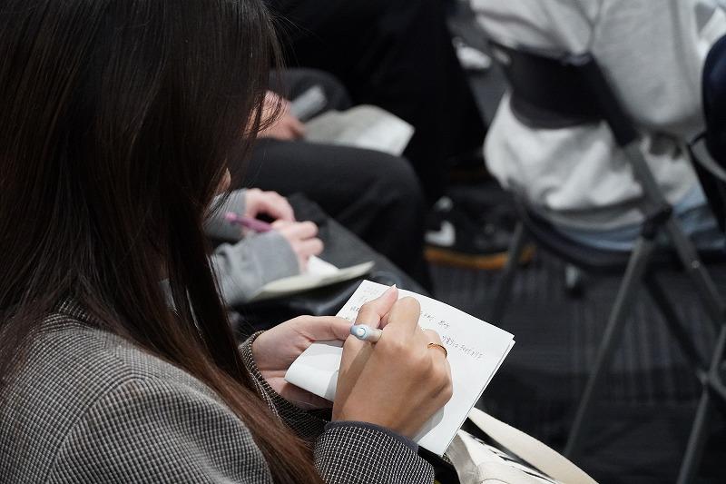 学生からは、「企業担当者とはとても話しやすかった」、「企業選びにおいて、プライム市場であれば身持ちの良い会社であることや、成長率や海外進出の数等を見るべきといった、就活における企業の見方を教わり、多方面において良い学びになった。」という声もあり、気軽に質問できる雰囲気や、授業の合間にも立ち寄れる自由な形式が好評でした。