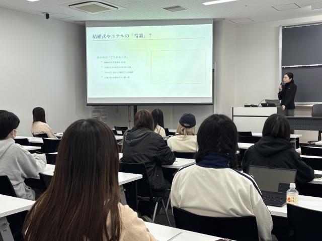 「日常」が「感動」に変わる瞬間をテーマに、宿泊に留まらないホテルイベントや多様化する結婚式の最新事例を紹介。デジタル化が進む今こそ、五感を通じた「リアルな体験」が圧倒的な価値を持つことを学びました。続くセッションでは、形のない「感動」をビジネスとして成立させる企画力と実現力を解説。特にブライダル事業の実例を通じ、自分自身が商材となって価値を創り出すやりがいを伝えていただきました。
