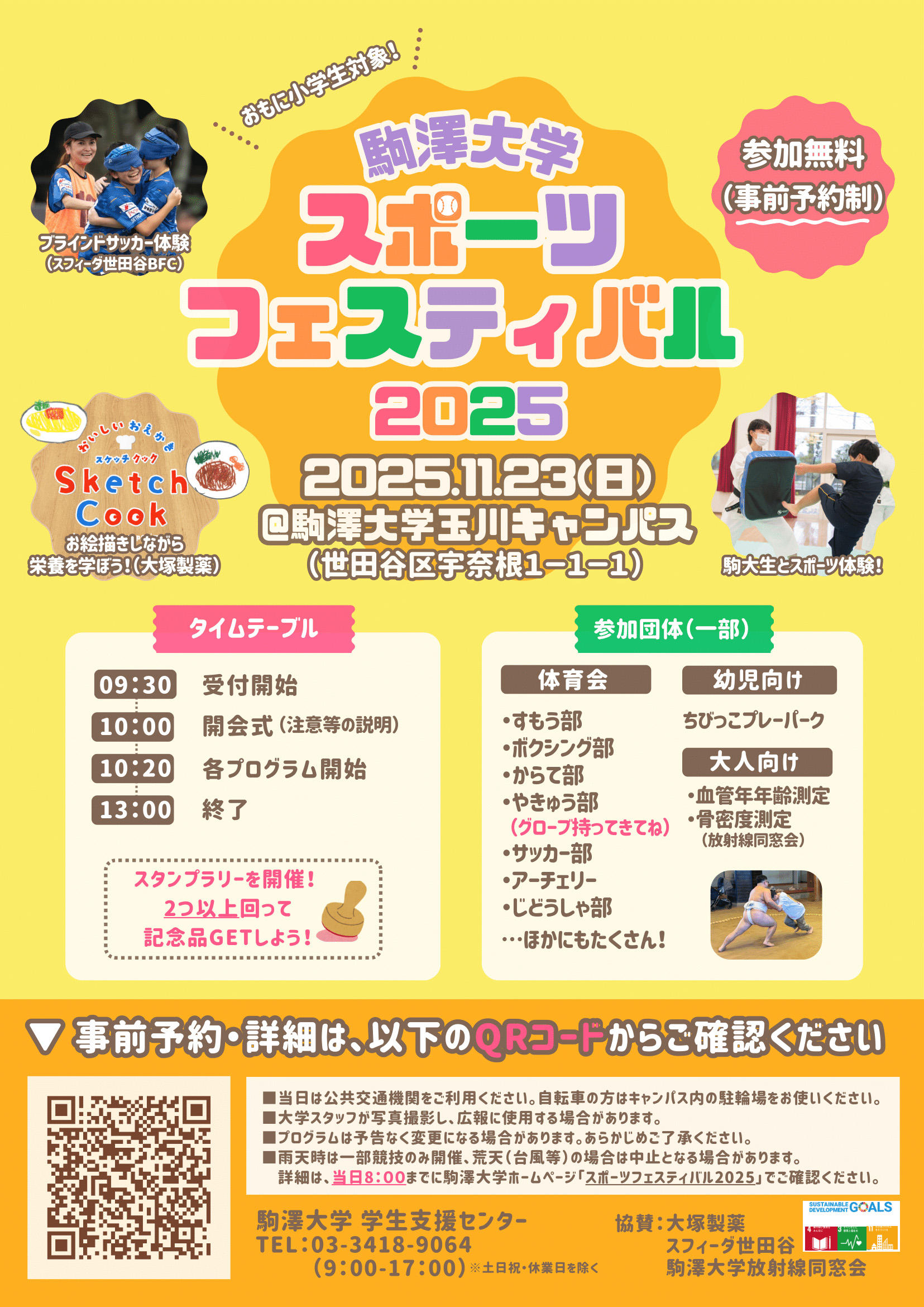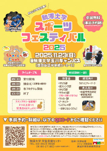 | 参加申込 | 下記フォームよりお申し込みください。 駒澤大学スポーツフェスティバル2025参加申し込みフォーム |