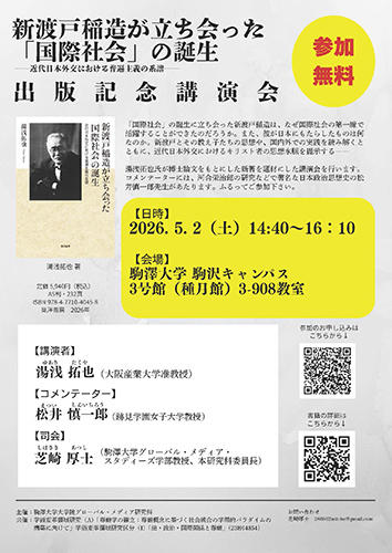 駒澤大学大学院グローバル・メディア研究科共催 『新渡戸稲造が立ち会った「国際社会」の誕生』出版記念講演会のお知らせ
