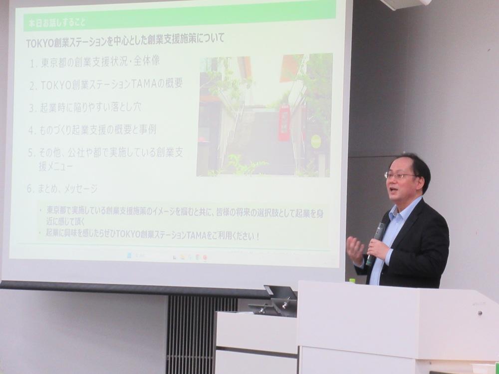 11月14日のベンチャー企業論Bでは、公益財団法人東京都中小企業振興公社の石坂悠人氏をお招きし、「TOKYO創業ステーションTAMAを中心とした東京都の起業支援施策について」というタイトルでお話しいただきました。