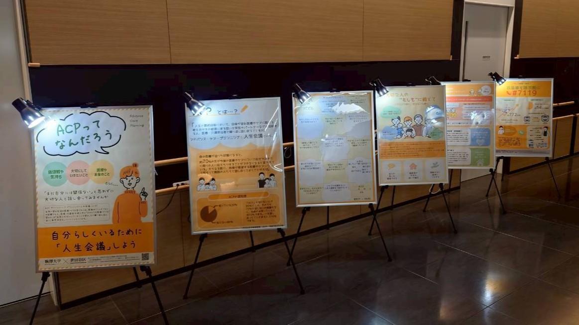 人生の最終段階について考えるのは、心のどこかで引っ掛かりを感じる方も多いと思います。学生たちは、少しでも抵抗を減らそうと、親しみやすい啓発ポスターのデザインで世田谷区にこの概念を広めようと活動しています。2023年から続くこのプロジェクトも3年目を迎えます。今回は新たな情報を盛り込んだ展示を行いました。