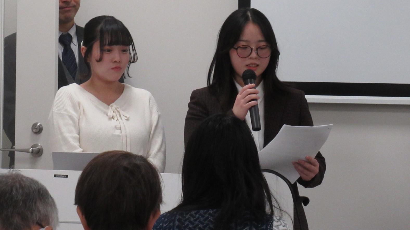 今回の企画の中心となった 髙倉 桃伽 さん(経営学科3年・埼玉県立伊奈学園総合高等学校卒)は「今回の展示が、一人でも多くの方にACPの重要性を届け、自身の意思と向き合うきっかけとなっていたなら幸い」と企画の成果を振り返りました。また、ACPを考えるツール「わたしのパズル」を制作した田中 優愛 さん(経営学科3年・東京都立深川高等学校卒)は「パズルという観点があっているかどうか不安でしたが、講演のスライドの中にパズルの表現があり、安心しました」と制作の苦悩を話しました。