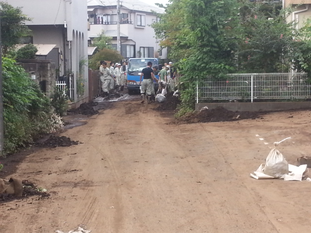 M運び出される泥。住宅街にスコップで地面を掻く音があちこりから聞こえる。 |