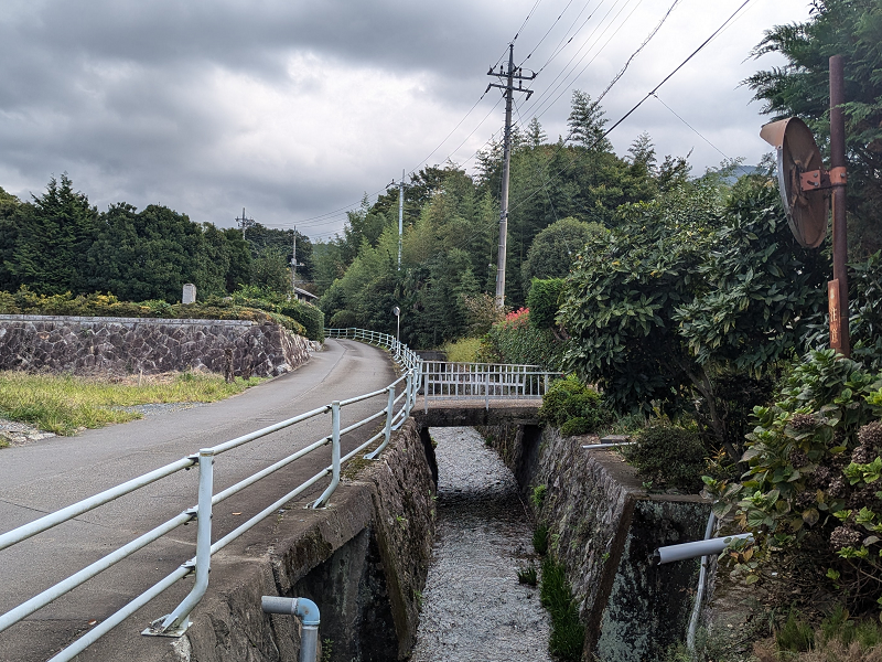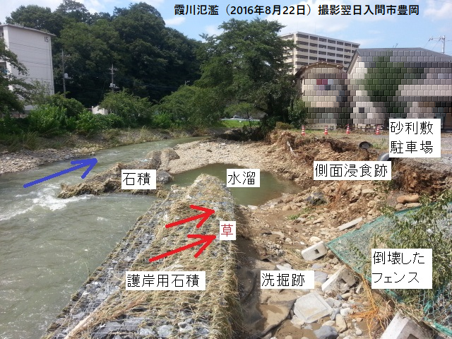 | 霞川が入間台地から入間川低地に流れ出て、右に屈曲する場所ですね(地理院地図)。川を意識した写真になれば良かったかも(ストリートヴュー)。霞川は2016年に写真の記念碑の1.4km上流で氾濫しています(霞川右岸の河岸侵食、住宅地への泥水侵入)。 | |