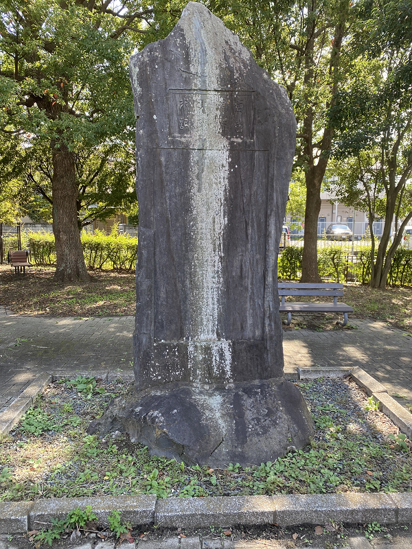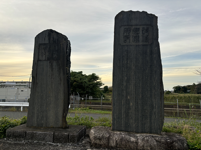 坂川治水顕彰碑 (千葉県松戸市) 坂川治水顕彰碑は、千葉県松戸市樋野口にある。坂川の毎年の水害が解消されたことを記念して建てられた。写真奥にみえる縦長の碑は、大正天皇が皇太子であった頃に、見学されたことを記念しているためか、坂川治水顕彰碑より、大きく、説明文がついていた。ここで、説明文を参考にし、説明していこうと思う。ポンプ式排水機場ができた年は、明治42(1909)年である。坂川の治水工事は、江戸時代後期から始まっている。江戸時代後期の文化から天保年間にかけて、流山市鰭ヶ崎の名手渡辺充房ら親子3代の苦難と長い年月により、整備された。しかし、明治の中頃から、雨が数日間降り続く、長雨があるたびに20あまりの村々が水浸しとなっていた。明治39年吉ヶ崎に排水機が設置されなかったが、あまり効果が得られなかった。そこで改めて、明治42(1909)年に排水機場を設けて、水害問題が解消した。(神出鬼没) |
