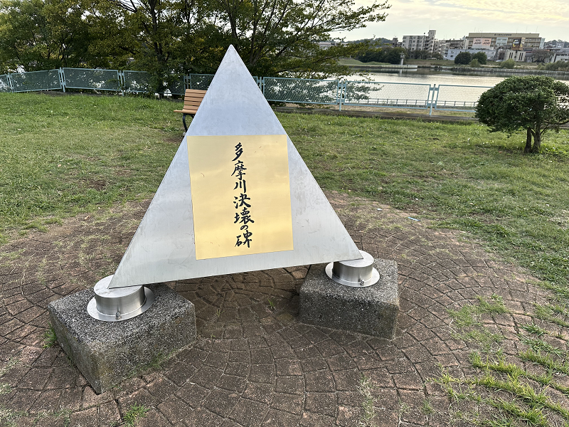 多摩川決壊の碑 (東京都狛江市) 小田急線の和泉多摩川駅から徒歩約5分に建てられている多摩川決壊の碑に行ってきた。(写真:多摩川決壊の碑)この災害伝承碑は、1974年8月31日深夜~9月1日夕方にかけて発生した台風16号の影響で、多摩川堤防が決壊した。この決壊は二ヶ領宿河原左岸の激しい迂回流によるものであったと、当時設置された多摩川災害調査技術委員会から発表された。主な被害として、本堤防が約260mにわたって崩壊し、周辺の猪方地区の家屋19棟が流出してしまった。現代と違い、メディアが発達していなかったが都内での災害ということもあり、リアルタイムで被害状況が報道されていた。そのため、全国的に注目されるような災害であったという。 そして、1998年に従来の位置より40m下流に洪水を安全に流し、水辺環境の保全と創造を目的とした新しい堰が築かれるとともに、水害の恐ろしさを後世に伝えるためにせっちされたのがこの多摩川決壊の碑である。(いっしー) |