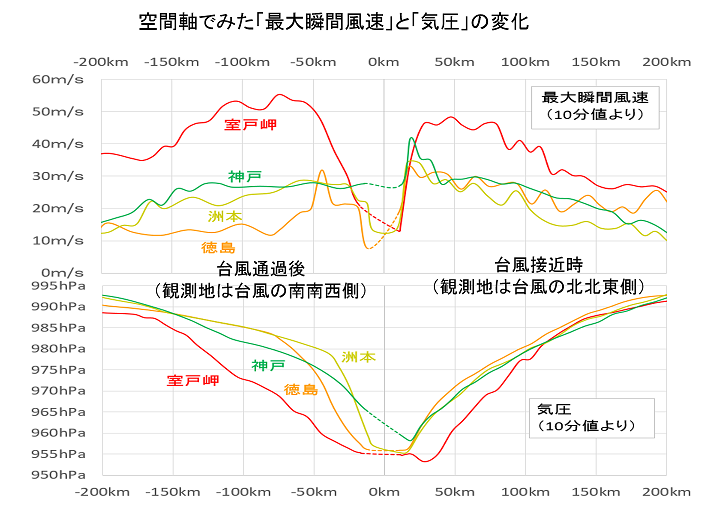 和歌山、彦根、敦賀、金沢で観測史上1位の記録を更新した。大阪は、室戸台風、第2室戸台風に次いで3位。