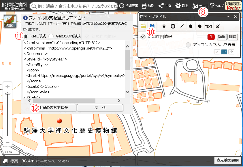 【地理院地図でのkmlファイルの作り方】