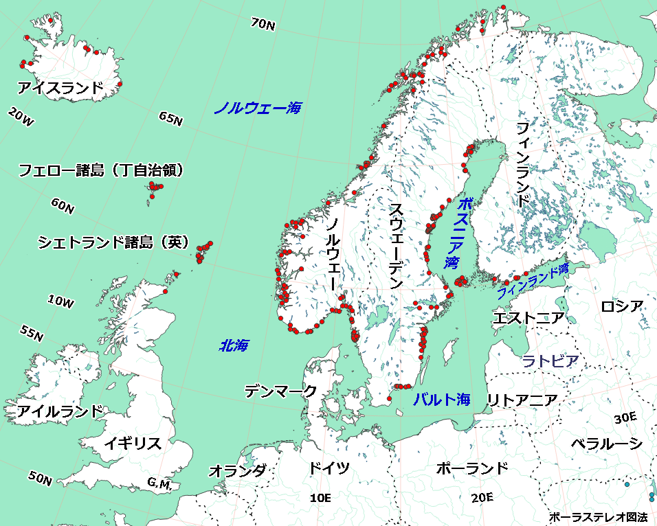 大多数が海辺ですが、内陸の湖畔の例がスウェーデンに4例ありました。フィンランドには、スウェーデン語が公用語となっているオーランド諸島に7例、フィンランド本土に7例ありました。なお、フィンランドでは、フィンランド語の地名表記と併記されているところもありました。 ヴァイキングは”入り江の民”という意味で、スカンジナビア半島を根拠地とした北方ゲルマン人です。武装船団を伴って、北海沿岸やバルト海で、交易を行っていました(8世紀末より)。現在のイギリスやオランダ、ドイツの沿岸では、時として略奪に遭うことがあり、海賊として恐れられていました。 フィヨルドの集落では、平坦地が少なく、農産物の生産にも限度があります。スカンジナビアは、緯度のわりに温暖とはいえ、天候不順に見舞われば不作になったこともあったでしょう。入り江の民が海賊化するのも想像ができます。ちなみに日本でも志摩半島を根城にした九鬼水軍がいました。こちらはリアス海岸が根拠地でした。. そのヴァイキングの末裔がノルマン人(捉え方によっては同義)となりますが、現在のフランスのノルマンジー半島に領地をもらい、イギリスを征服したり(ノルマンコンクエスト)、バルト海からロシアに進出したり(ルーシ:船を漕ぐ人の意)、武力が認められてイタリア南部に支配権を確立したりしました。世界史で習うところです。黒海・アゾフ海北岸やドニエプル川流域に、-vka地名が多数あります。キリル文字では-Bkaとなります。ノルマン人の活動地域なのでvikが起源なのかもしれませんが、本来の「入り江」の意味が失われ、「村」という意味に変化しているのかもしれません(調査中)。 ヴァイキングの活動について、海賊なのか、交易がメインだったのか、色々と議論があるようです。歴史を北欧からみるか、西欧・東欧からみるかによって微妙に変わってくるものと思います。ルーネル・ヨンソンは、乱暴が嫌いな細身の少年を主人公「ビッケ」にして、知恵をめぐらせることで難問を解決してくストリーに仕立てあげました。ヴァイキングのマイナスイメージを払拭しようとしたのでしょうか。 、 |