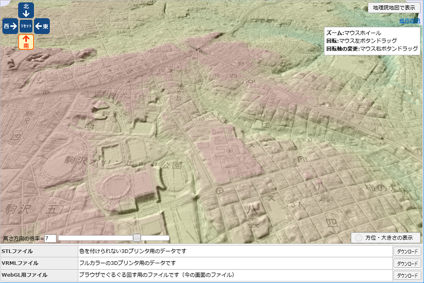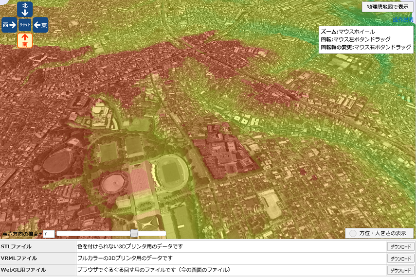 地理院地図では、さまざまな地図情報が表示でき、3Dで眺めることができます。