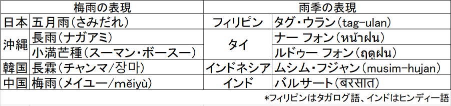 これら盛夏の前に雨期がある国々のことを「モンスーンアジア」なんて呼んだりします。
