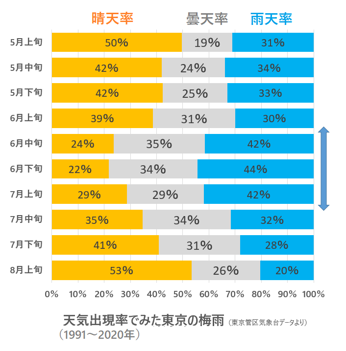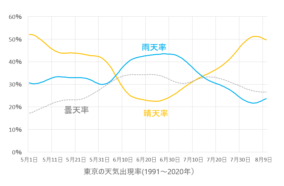 天気出現率からみる東京の梅雨