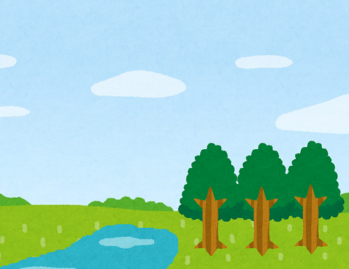 【温度上昇の抑制効果】 森林や草原、 湖があったりすると、 日中の温度上昇が 抑制されます。 草地の土壌には 水分が蓄えられています。 また、木々の葉面からも 蒸発散があります。 水分が蒸発する時に、 熱を奪うことで、 気温を下げる効果があります。 また、開けたところでは、 適度な風も吹きますし、 熱が拡散しやすい環境です。 |