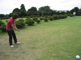 パターゴルフは3〜5打で入れる小さなコースが18か所あり、いかに少ない打数で終えるか、というゲームです。ゴルフの経験者は曽我先生しかいなかったのですが、今回はハンデが設けられたため、誰が優勝するのか、まったくわからないものとなりました。
