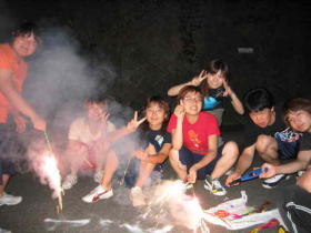 ↓コンパのあとは花火です。ペンション街なのでとっても静か。